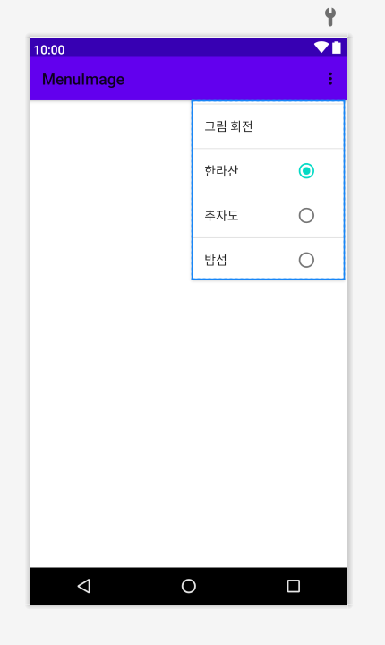 [안드로이드 자바] 메뉴를 이용한 이미지 변경, 이미지 회전(Menu, setRotation) 본문