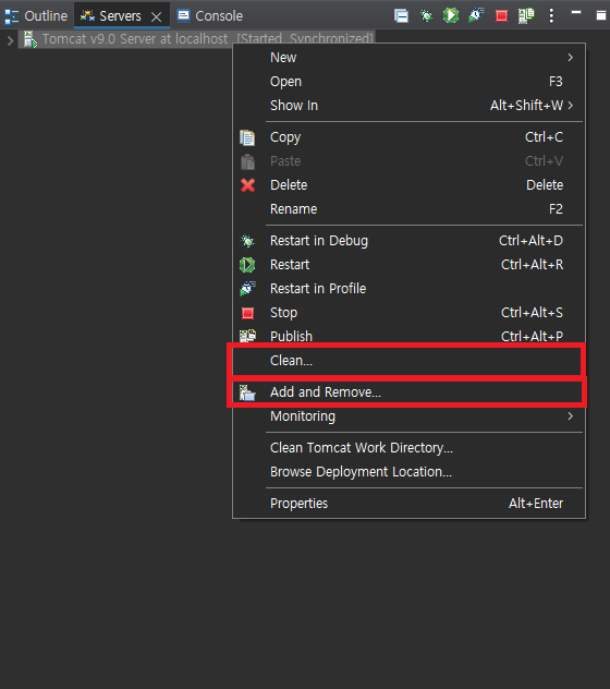 이클립스 STS 오류 Could not publish server configuration for Tomcat v9.0 Server at localhost.