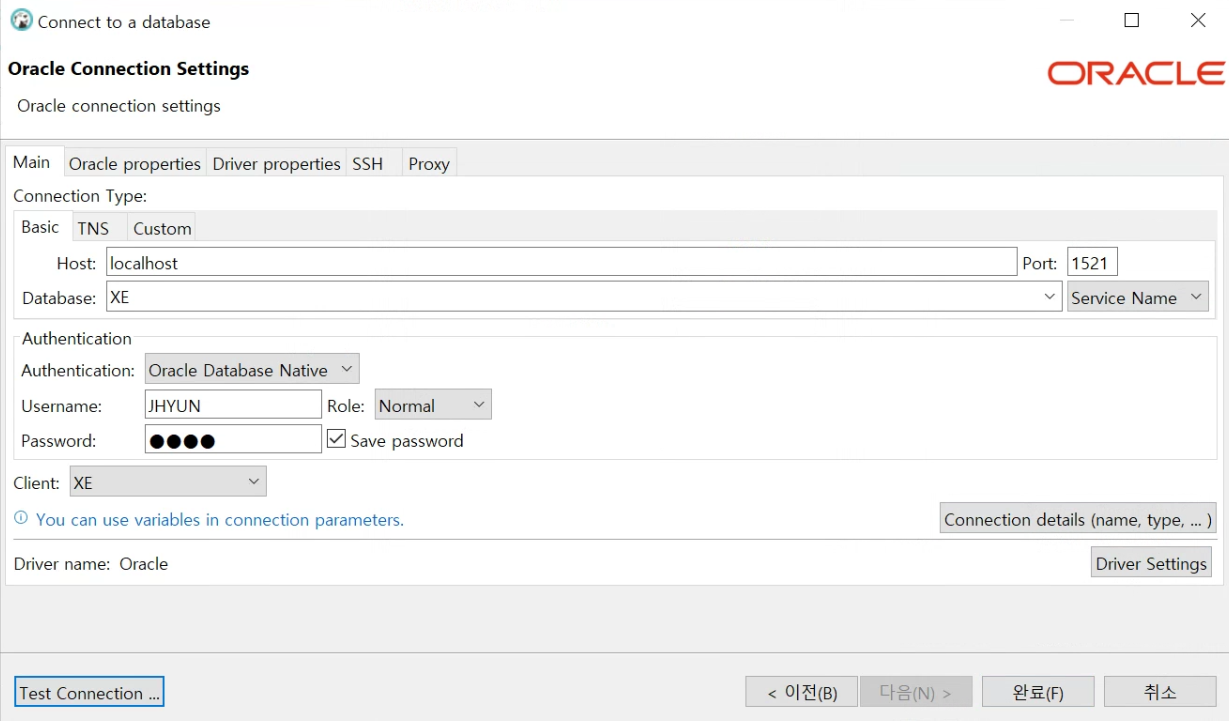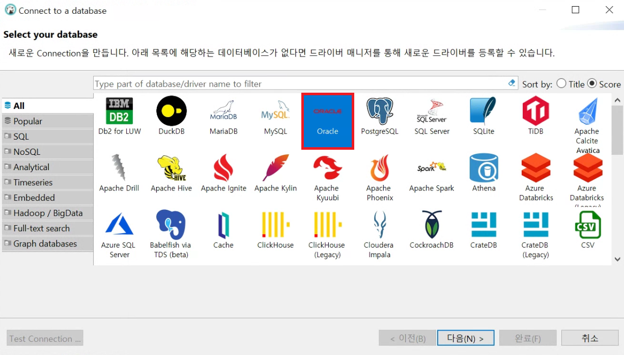오라클 선택 > 다음