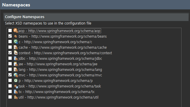 DispatcherServlet-servlet.xml 에 mvc 네임스페이스를 추가한 후에 등록해야 한다(순서 중요)