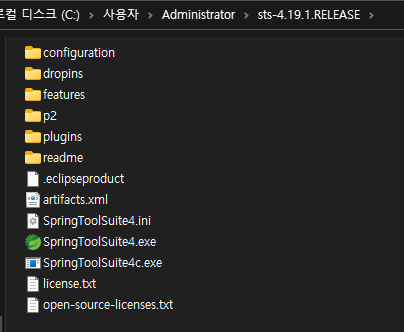 java -jar 해당파일경로\spring-tool-suite-4-4.19.1.RELEASE-e4.28.0-win32.win32.x86_64.self-extracting.jar