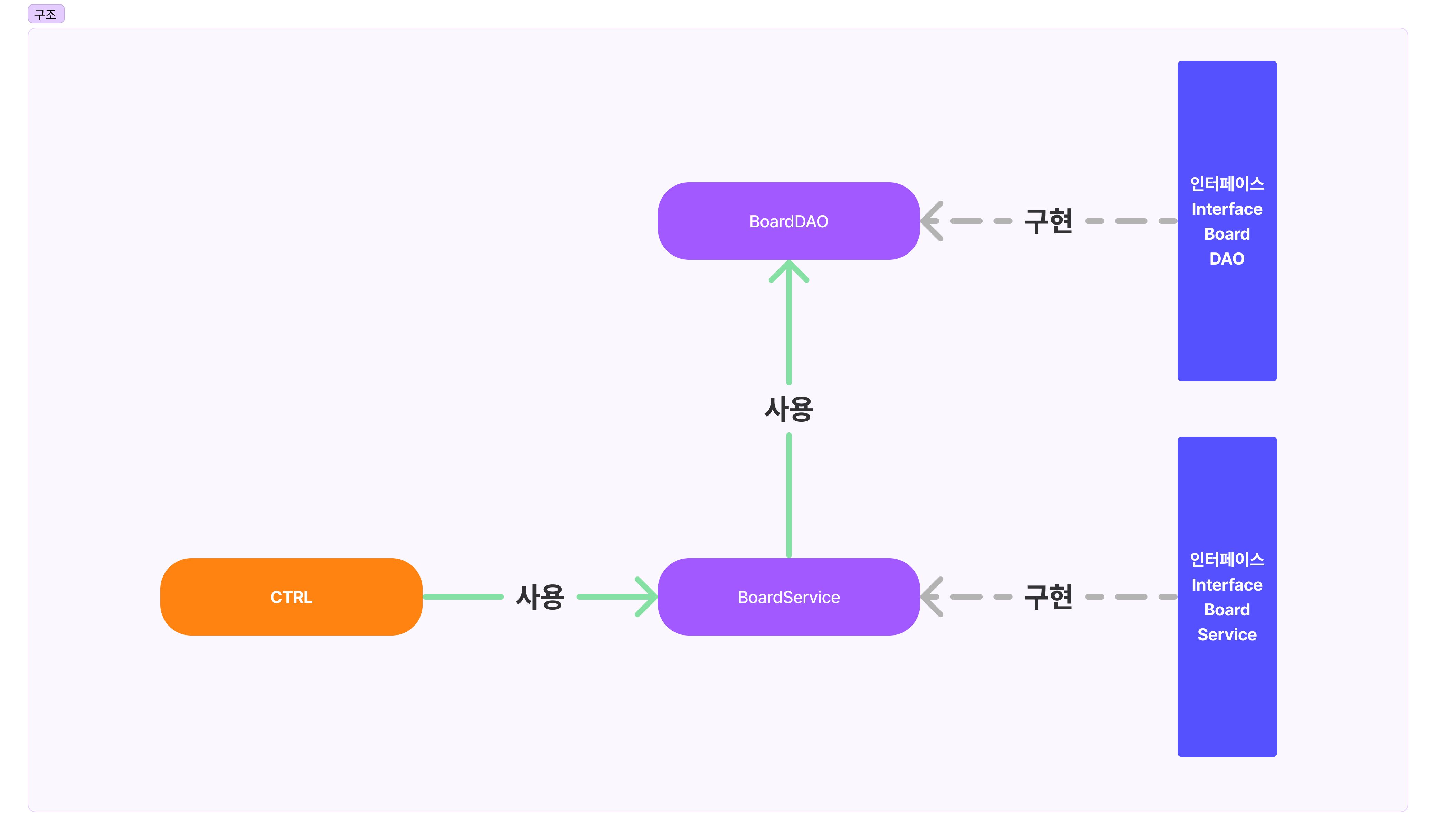 Service와 DAO는 각각 Interface를 활용하여 구현한다