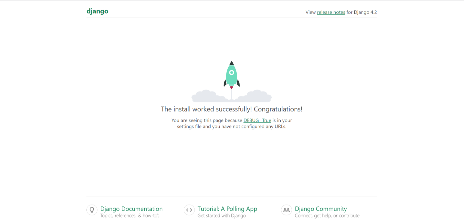 ' http://localhost:8000/ '를 주소입력창에 입력하여 연결을 확인할 수 있다