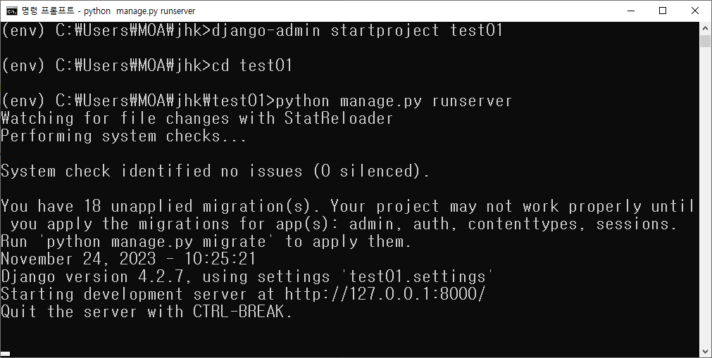 django-admin startproject [프로젝트명]