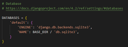 장고에서 기본적인 데이터베이스 관련 설정은 위와 같으며 settings.py 에 위치한다
