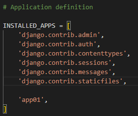 'app01' 어플리케이션의 apps.py에 App01Config 클래스로 구현되어 있는데