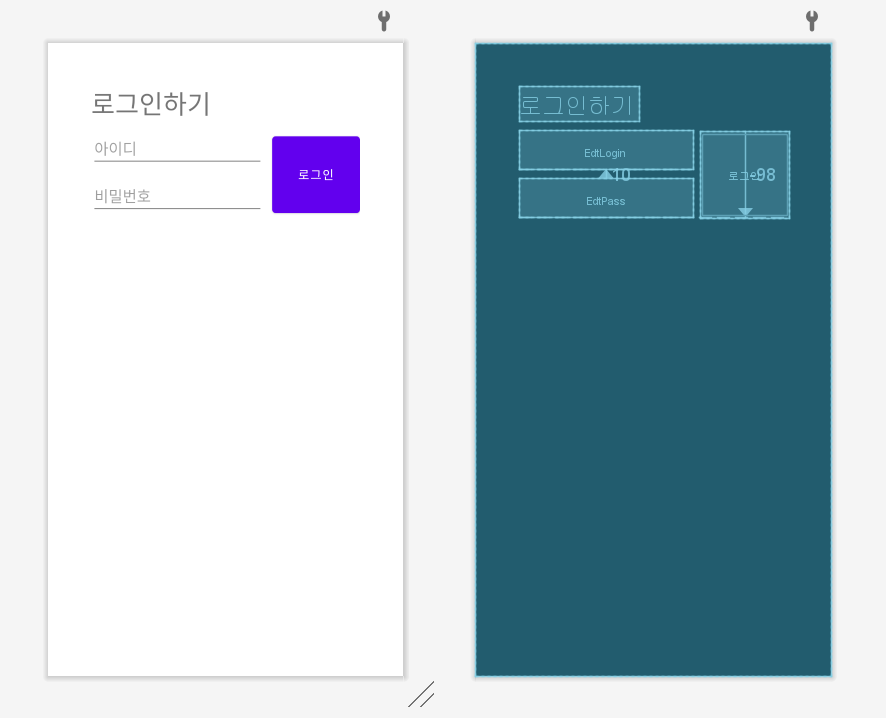 2. 로그인 화면에는 두 개의 입력상자와 하나의 버튼이 들어가도록 합니다.