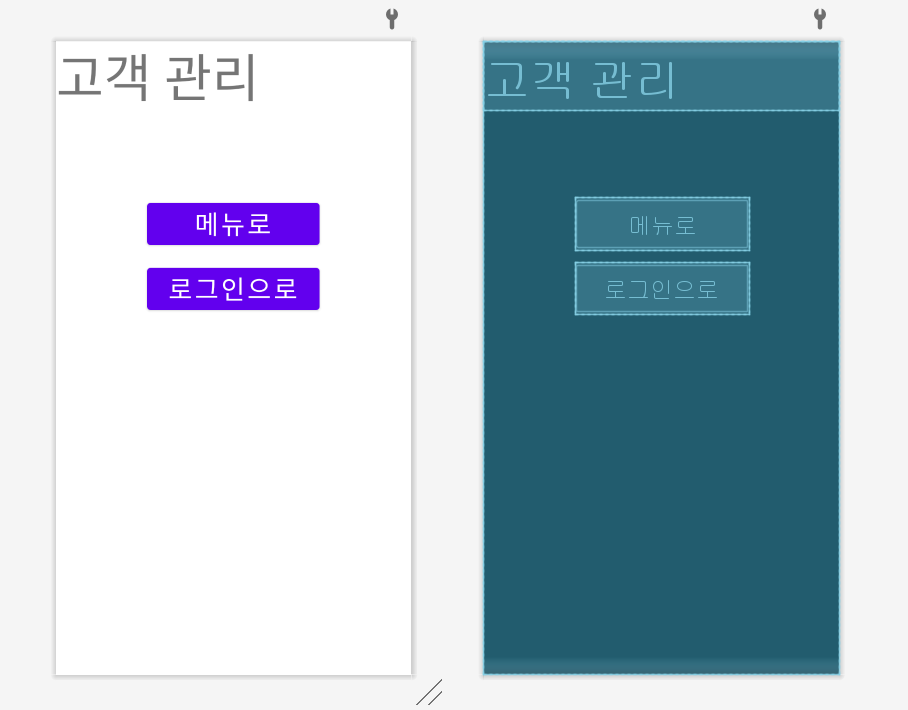 1. 로그인 화면과 메뉴 화면 그리고 세 개의 서브 화면(고객 관리 화면, 매출 관리 화면, 상품 관리 화면)을 각각 액티비티로 만듭니다.