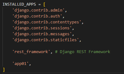 settings.py의 INSTALLED_APPS 목록에서 'resr_framework'를 추가한다
