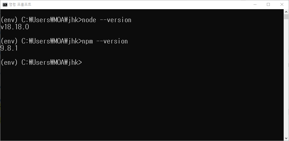 Node.js와 npm의 버전을 확인할 수 있다