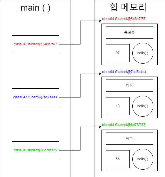 // 전부 다르게 나오며 new를 통해 힙메모리에 있어 주소값이 출력됨