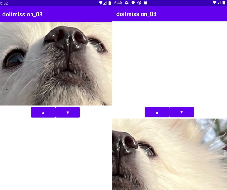 두 개의 이미지뷰룰 한 화면에 보여주고 하나의 이미지를 두 개의 이미지뷰에서 번갈아서 보여준다