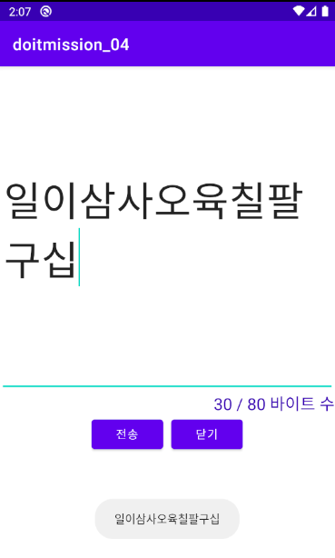 4. [전송] 버튼을 누르면 글자를 화면에 토스트로 표시하여 내용을 확인할 수 있도록 합니다.