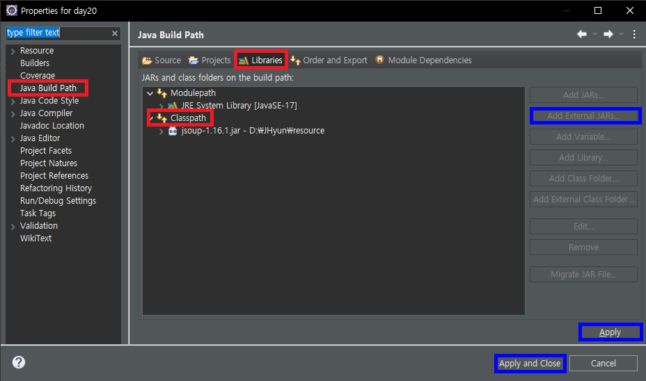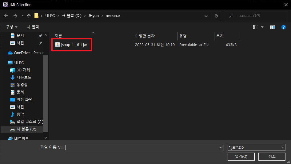 다운 받은 jar 파일 선택 후 적용한다